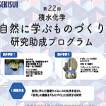 2024-07-01 / 最終更新日時 : 2024-07-01 admin 自然に学ぶものづくりNews 2024年度「自然に学ぶものづくり」研究助成テーマ募集 終了 2024年度の研究助成の募集は、終了いたしました。 募集期間:2024年5月7日(火)~2023年6月30日(日) 2024年度 積水化学 「自然に学ぶものづくり」 研究助成 応募要領 “ 「自然に学んだ」「 […]
