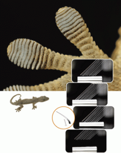 最上段の2枚の写真は、2種類の色素を用いて粘土ナノシートとの複合体による吸収の色調変化を観察したもの。それぞれの写真の左側は水と色素、中央は水と複合体(剥離体)、右側は水と複合体(積層体)である。2段目と3段目左の3枚の発光写真は、それぞれ左側は水と色素、右側は水と複合体(剥離体)であり、2段目の2枚では発光色の変化、3段目では発光強度の増大が見られる。3段目右側は、色素-粘土複合体の蛍光で描いたカワセミの絵(博士2年、塚本孝政さん作)で、美しく発光している。いずれもブラックライトを照射。最下段の写真は、粘土鉱物の表面を撮影した原子間力顕微鏡(AFM)画像。粘土鉱物は、ケイ素、マグネシウム、アルミニウムを含む板状の粒子で、右側の拡大写真では平滑な表面と原子配列の規則性が見て取れる。